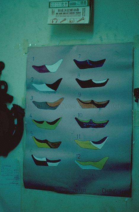 PATTERNS ON WALL OF FLOWER SHOES FOR BOUND FOOTED LADIES, AT MAKER'S HOUSE IN TANJONG PAGAR