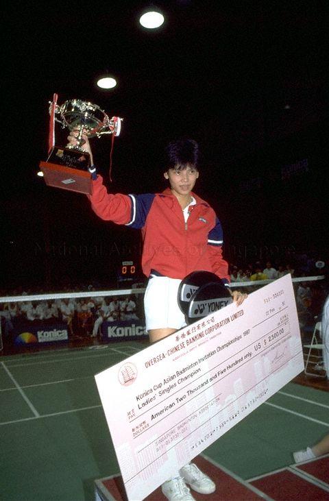 WINNER OF THE KONICA CUP ASIAN BADMINTON INVITATION CHAMPIONSHIPS WOMEN'S SINGLES ELIZABETH LATIEF IN THE SINGAPORE BADMINTON HALL