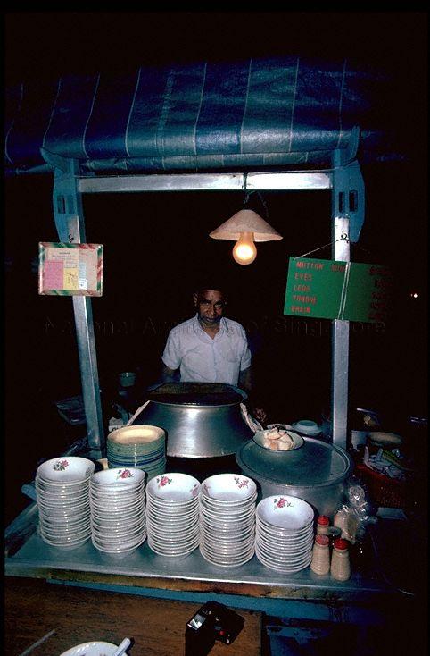 MUTTON CURRY SOUP STALL IN 1970S SERVING CUSTOMERS FROM A CARPARK AT SHENTON WAY
