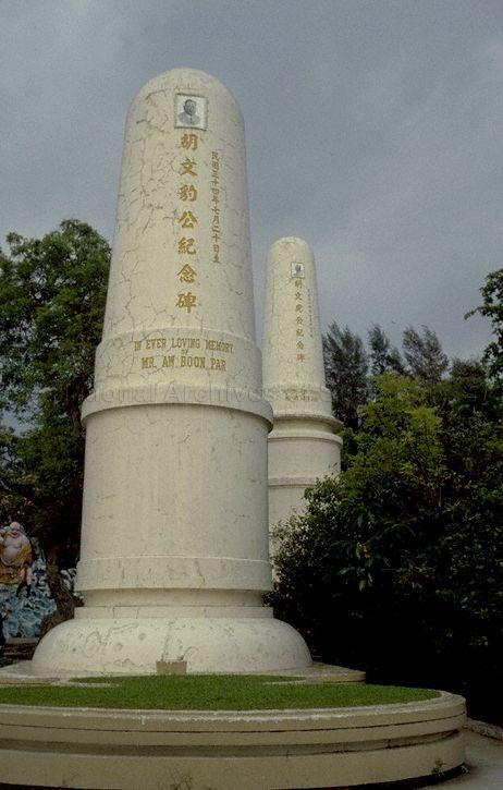 TIGER BALM GARDENS. MEMORIALS TO AW BOON HAW AND AW BOON PAR