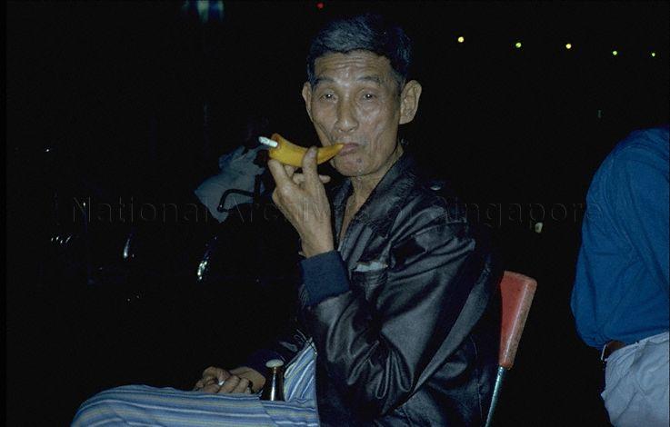 MAN WITH IVORY CIGARETTE HOLDER AT CLARKE QUAY WAYANG SHOW