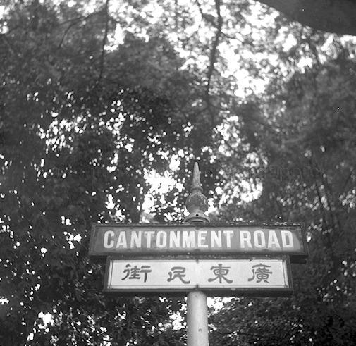 STREET SIGN IN ENGLISH AND CHINESE FOR CANTONMENT ROAD