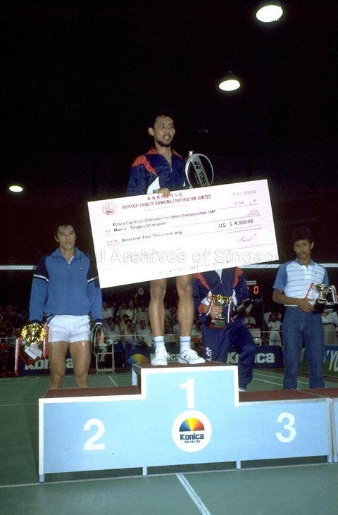 MALAYSIAN MISBUN SIDEK, WINNER OF THE KONICA CUP ASIAN BADMINTON INVITATION CHAMPIONSHIPS MEN'S SINGLES IN THE SINGAPORE BADMINTON HALL