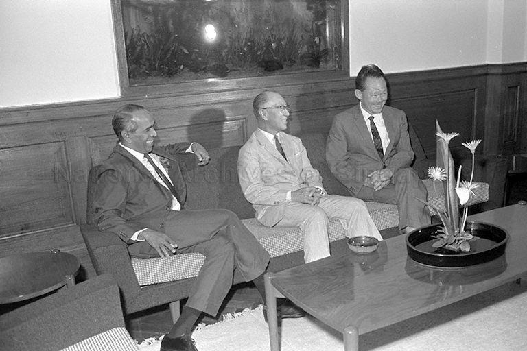 MINISTER OF NATIONAL DEVELOPMENT OF THAILAND POTE SARASIN WITH PRIME MINISTER LEE KUAN YEW (RIGHT) AND THE MINISTER FOR FOREIGN AFFAIRS S RAJARATNAM (LEFT) AT THE PRIME MINISTER'S OFFICE