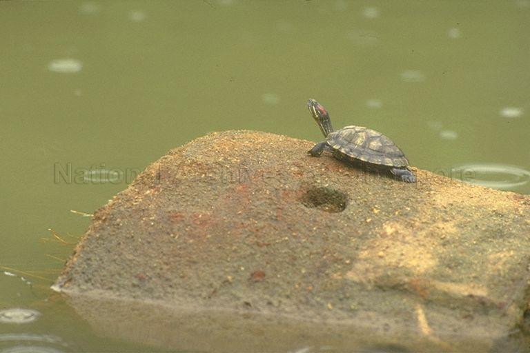 A TERRAPIN BY A POND AT THE SINGAPORE ZOOLOGICAL GARDENS (MID 1980S)