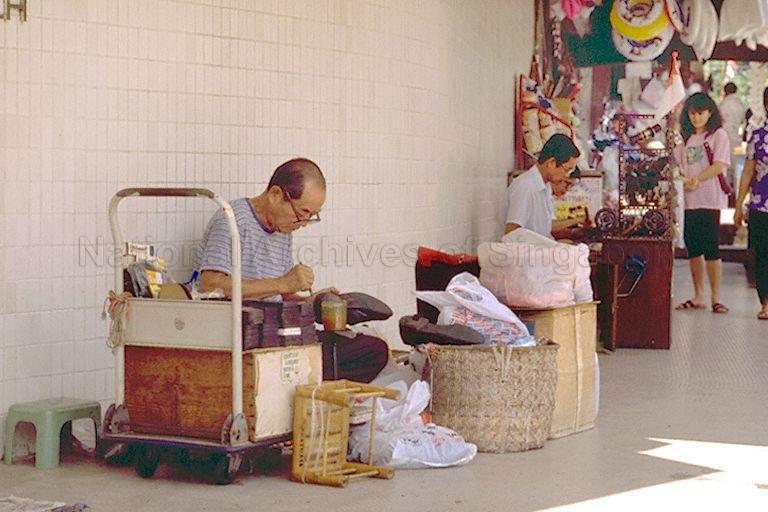 A COBBLER MENDING SHOES AT A CORRIDOR IN HOLLAND VILLAGE (C.1990S)