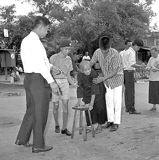 DISTRIBUTION OF CHINESE NEW YEAR GIFT AND ANG POW TO OLD PEOPLE AT THE GREAT WORLD PARK BY SHAW BROTHERS.