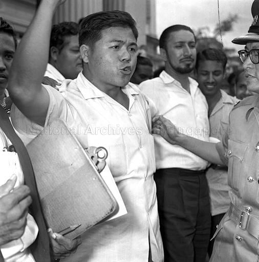(X) JAMIT SINGH (2L), GENERAL SECRETARY OF THE SINGAPORE HARBOUR BOARD STAFF ASSOCIATION FACES A CHARGE IN THE FIRST CRIMINAL DISTRICT COURT FOR MISUSE OF UNION FUNDS. A CROWD OF ONLOOKERS AND SUPPORTERS GATHERED OUTSIDE THE COURT HOUSE.