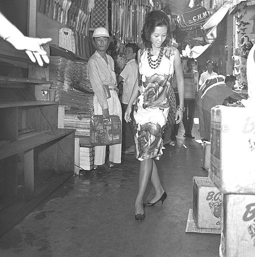 THE MUU-MUU IS PERHAPS THE QUEEREST NAME OF ALL, AFTER A FASHION DECADE OF SOME PRETTY ODD ONES - LIKE THE TRAPEZE, THE H-LINE AND THE SACK. IT IS NAMED AFFECTIONATELY, BY MODERN HAWAIIANS... THE GRANDMOTHER TUTU MUU. THE MUU-MUU IS MADE IN HAWAII, AND EXPORTED ALL OVER THE WORLD. STILL LIKE THE OLD MUU, IS WHAT IS CALLED THE "SHORTIE" MUU. SQUARE NECKS, ROUND NECKS, DIAMOND-SHAPED NECKS AND A RIOTOUS PROFUSION OF COLOURS MAKE EACH ONE DIFFERENT FROM THE NEXT.