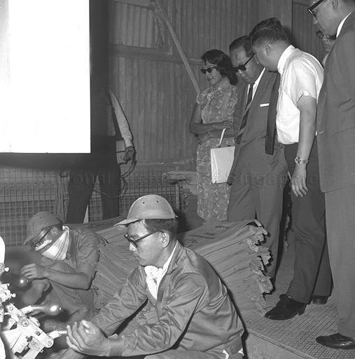 [LIM SWEE AUN (C )] THE MINISTER OF COMMERCE AND INDUSTRY, DR LIM SWEE AUN ACCOMPANIED BY MRS LIM BEING SHOWN AROUND SINGAPORE CEMENT MANUFACTURING LTD DURING HIS TOUR OF SINGAPORE FACTORIES.
