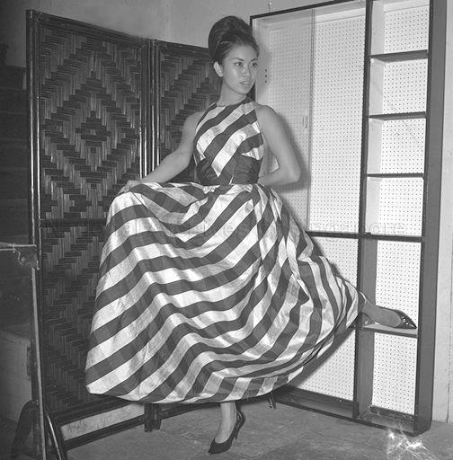 A LONG DRESS FOR THE FASHIONABLE FIRL TO DANCE IN, DINE IN OR JUST SIT AROUND IN DURING CHINESE NEW YEAR OR HARI RAYA. THIS ONE IS IN WHITE THAI SILK WITH BLACK DIAGONAL STRIPES. THE DRESS HAS A HALTER NECKLINE IN FRONT AND DIPS TO A DEEP V AT THE BACK. IT COMES WITH A MATCHING BLACK CUMMERBUND.
