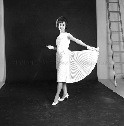 MODEL AT ST STUDIO. THE PARISIENNE LOOK IS NO MORE THAN JUST A READY-TO-WEAR COPY OF AN ORIGINAL PARIS DRESS. IT'S ALSO A HAIRSTYLE, AND A COLOUR. IT'S A NECKLACE, A PAIR OF EARRINGS AND A HAT. IT'S IN THE SHAPE OF YOUR SHOES, THE COLOUR OF YOUR STOCKING, AND THE KIND OF FLOWERS YOU PIN TO YOUR COLLAR.
