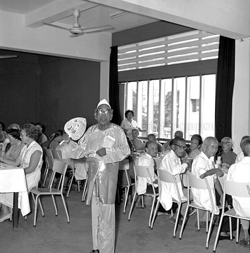 ANNUAL RED CROSS TEA PARTY FOR THE AGED. IT WAS HELD AT THE RED CROSS HEADQUARTERS IN PENANG LANE. SOME 100 OLD MEN AND WOMEN FROM THE BUSHEY PARK, WOODSTOCK HOME AND OTHER SOCIAL WELFARE HOMES WERE THE GUESTS.