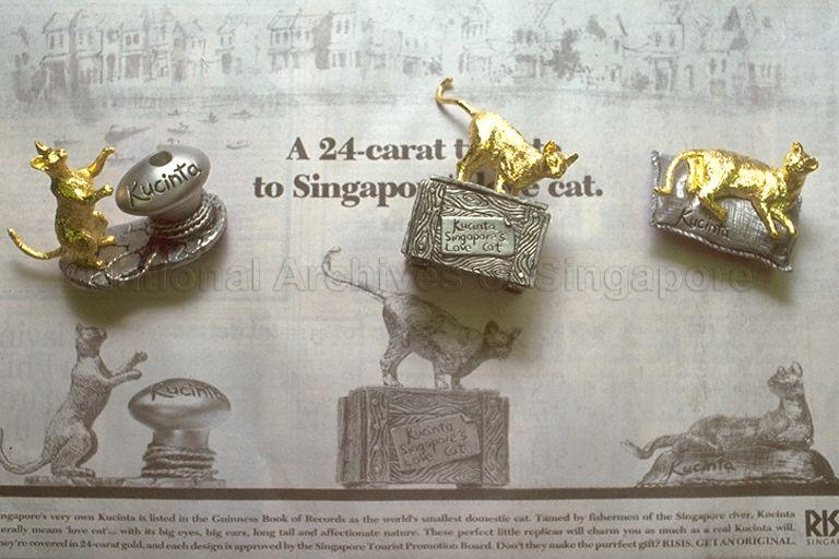 GOLD-PLATED REPLICAS OF KUCINTA (A SINGAPURA CAT) , THE TOURISM MASCOT OF THE SINGAPORE TOURIST PROMOTION BOARD. (EARLY 1990S)