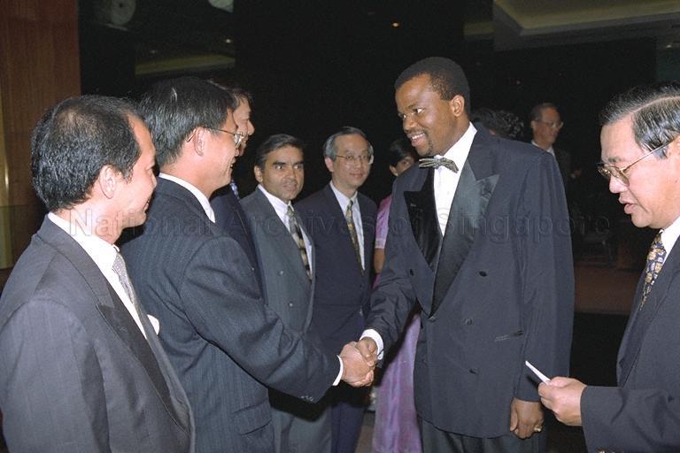 SWAZILAND KING MSWATI III AND QUEEN GREETING WELCOME PARTY ON THEIR ARRIVAL FOR A STATE DINNER HOSTED BY PRESIDENT ONG TENG CHEONG AT THE MANDARIN HOTEL