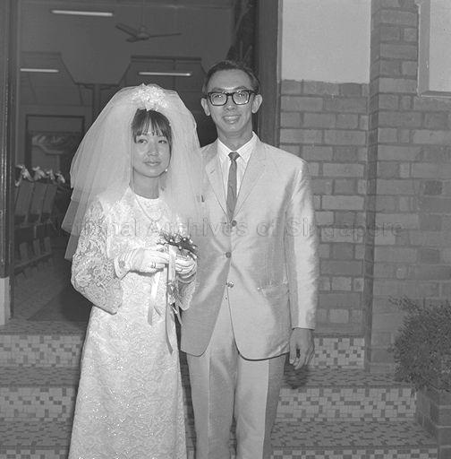 MR AND MRS GOH KIAN CHEE, BOTH 24, AFTER THEIR WEDDING AT BETHESDA (KATONG) CHURCH. THE BRIDEGROOM IS SON OF MINISTER OF FINANCE DR GOH KENG SWEE AND THE BRIDE IS A TEACHER AT ST MARGARET'S SECONDARY SCHOOL
