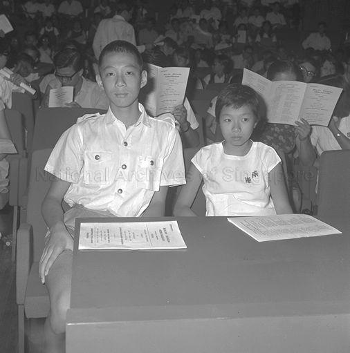 LEE HSIEN LOONG, 14, (LEFT) AND HIS SISTER LEE WEI LING, 10, CHILDREN OF PRIME MINISTER LEE KUAN YEW, WERE AMONG THE 100 SCHOOL PUPILS WHO WON PRIZES IN THE MINISTRY OF EDUCATION'S NATIONAL LANGUAGE MONTH ESSAY AND POSTER COMPETITIONS.