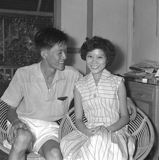 QUEK SHOK HOON (RIGHT), 22, AT HOME WITH HER HUSBAND OF TWO WEEKS CHYE CHEN THONG. SHE WAS ONE OF THE TWO GIRLS RELEASED FROM OUTRAM PRISON AFTER HER DETENTION DURING THE RECENT STUDENT ARRESTS.