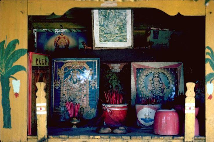 AN ALTAR TO HINDU GODS, INCLUDING SHIVA, AT THE MONKEY GOD TEMPLE AT BUKIT PURMAI.