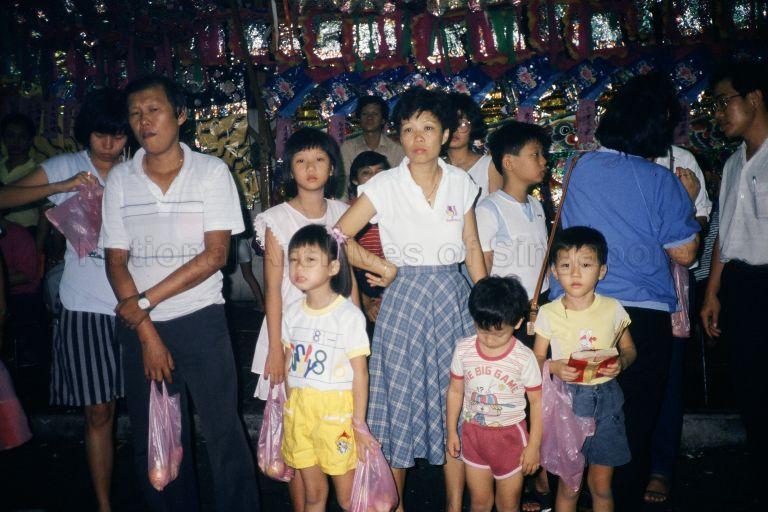 A FAMILY OF DEVOTEES AT A SEVEN MOON HUNGRY GHOST CEREMONY.