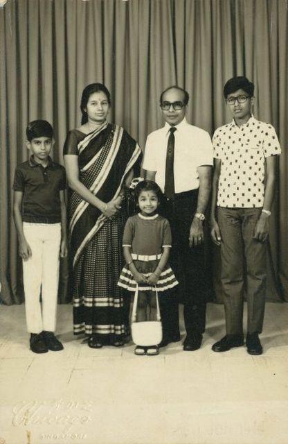 A 1973 PHOTOGRAPH OF N. SUBBIAH'S FAMILY, WITH (L TO R) LAKSHMANAN (2ND SON), LEELAVATHI ACHI (WIFE), SUBRAMANIUM (ELDEST SON), AND SEETHA LAKSHMI (DAUGHTER STANDING IN FRONT).