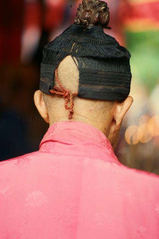 BACK VIEW OF THE HEADDRESS AND ROBE WORN BY A TAOIST PRIEST