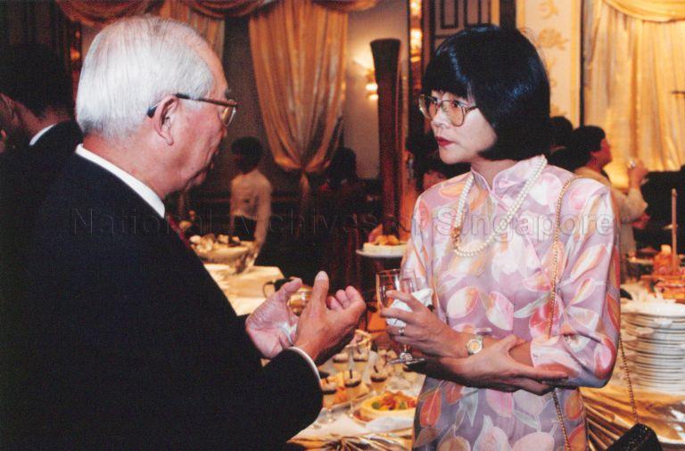 NOMINATED MEMBER OF PARLIAMENT DR LEE TSAO YUAN (RIGHT) WITH MINISTER FOR FINANCE DR RICHARD HU TSU TAU DURING ANNUAL RECEPTION FOR HEADS OF DIPLOMATIC/CONSULAR MISSIONS AND INTERNATIONAL ORGANISATIONS HOSTED BY PRESIDENT AND MRS ONG TENG CHEONG AT MANDARIN SINGAPORE