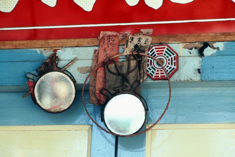 SERIES OF PICTURES SHOWING VARIOUS TYPES OF TALISMAN AND HOW THEY ARE PLACED, SOMETIMES WITH OTHER RELIGIOUS ICONS, OVER DOORWAYS OF HOUSES, IN ORDER TO WARD OFF EVIL