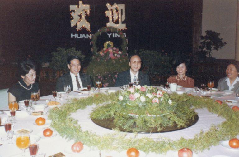 SHANDONG VICE-GOVERNOR MA SHIZONG (CENTRE) HOSTING A BANQUET IN HONOUR OF SECOND DEPUTY PRIME MINISTER ONG TENG CHEONG (2ND LEFT) AND MRS ONG (2ND RIGHT) DURING A VISIT TO THE PEOPLE'S REPUBLIC OF CHINA, 23 MAY-3 JUNE 1986