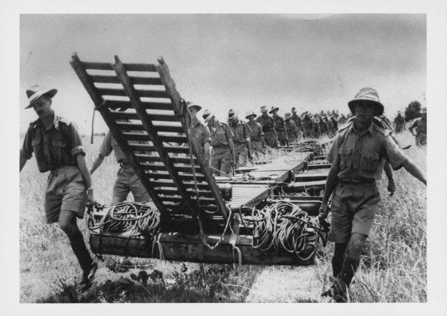 AUSTRALIAN TROOPS IN SINGAPORE: AUSTRALIAN SOLDIERS PREPARE PONTOON BRIDGES.