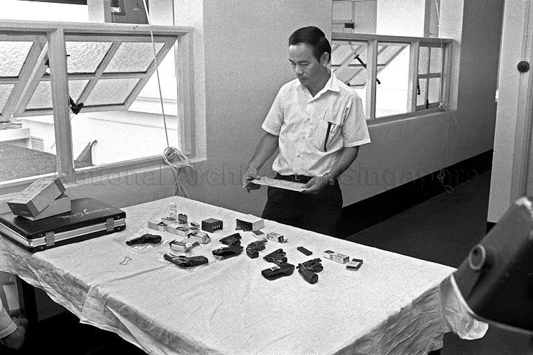 POLICE SMASHED A GUN-FOR-HIRE SYNDICATE AND ARRESTED SEVEN MEN. THE SEIZED GUNS AND BULLETS WERE DISPLAYED AT JOO CHIAT POLICE STATION