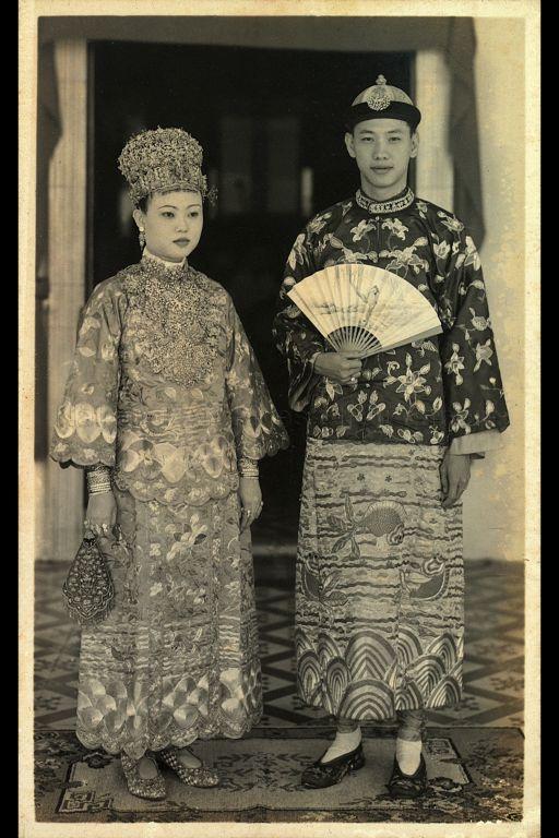 WEDDING PHOTOGRAPH OF MR LIM KIM SAN AND WIFE MADAM PANG GEK KIM IN PERANAKAN WEDDING COSTUME