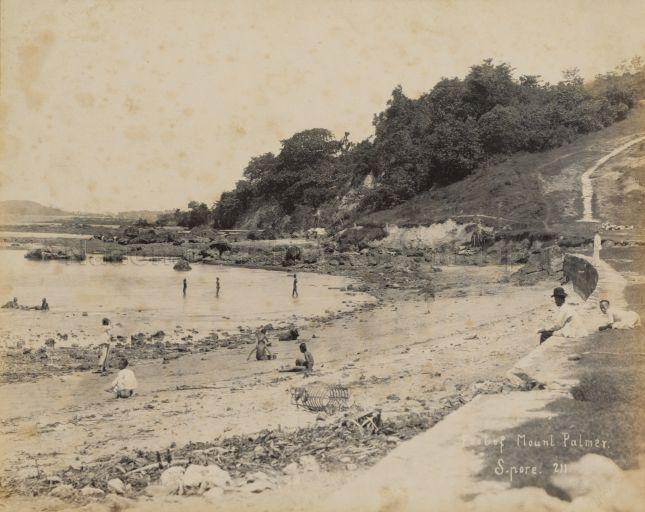 BEACH AT THE FOOT OF MOUNT PALMER, SHOWING CHINESE DIGGING COCKLES. TAKEN BY G R LAMBERT AND CO.
