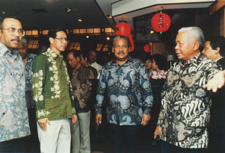 INDONESIA ADMIRAL (RETIRED) SUDOMO (RIGHT) HOSTING DINNER FOR SECOND DEPUTY PRIME MINISTER ONG TENG CHEONG (2ND LEFT) IN A JAPANESE RESTAURANT, THE YAKINIKU DAIDOMON DURING VISIT TO INDONESIA