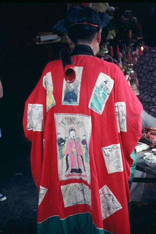 VIEW OF BACK OF ELABORATE TAOIST PRIEST COSTUME