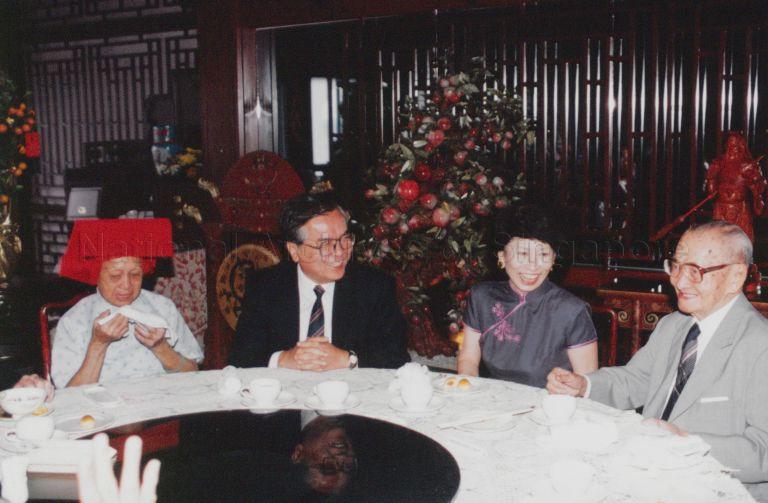 GUEST OF HONOUR, MRS ONG (2ND RIGHT), WIFE OF PRESIDENT ONG TENG CHEONG AND OVERSEAS UNION BANK LIMITED CHAIRMAN LIEN YING CHOW (RIGHT) AT THE LUNAR NEW YEAR LUNCHEON WITH SAMSUI WOMEN AT THE MANDARIN HOTEL