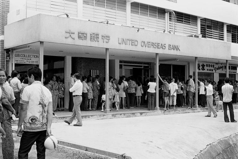 BANK RUN AT THE CHUNG KHIAW AND UNITED OVERSEAS BANKS WHERE PEOPLE QUEUED UP FOR WITHDRAWAL
