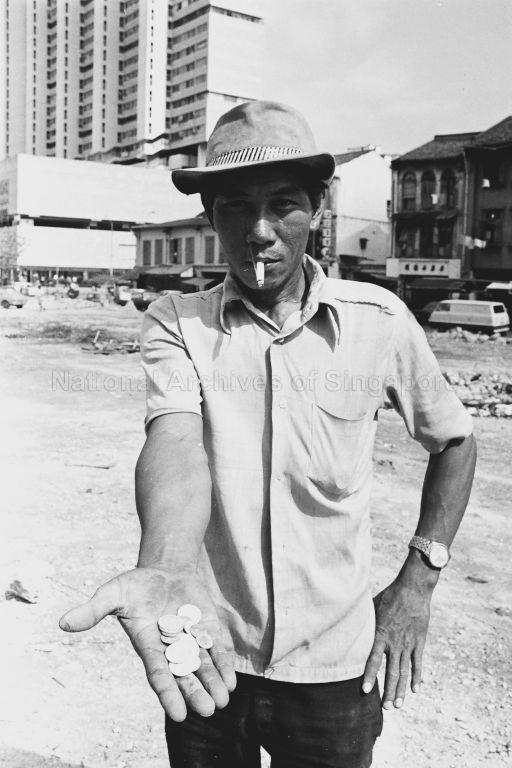 MAN DISPLAYING THE COINS THAT HE FOUND AT SAGO STREET SITE WHERE MONEY WAS UNEARTHED