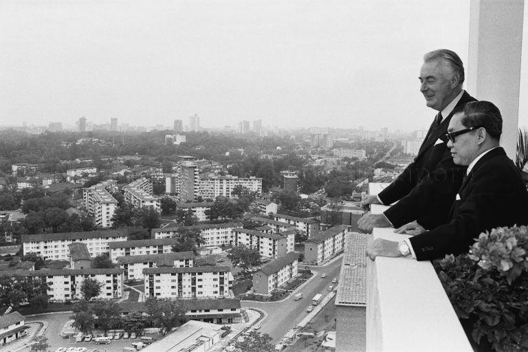 AUSTRALIAN PRIME MINISTER GOUGH WHITLAM VISITING QUEENSTOWN FLATS