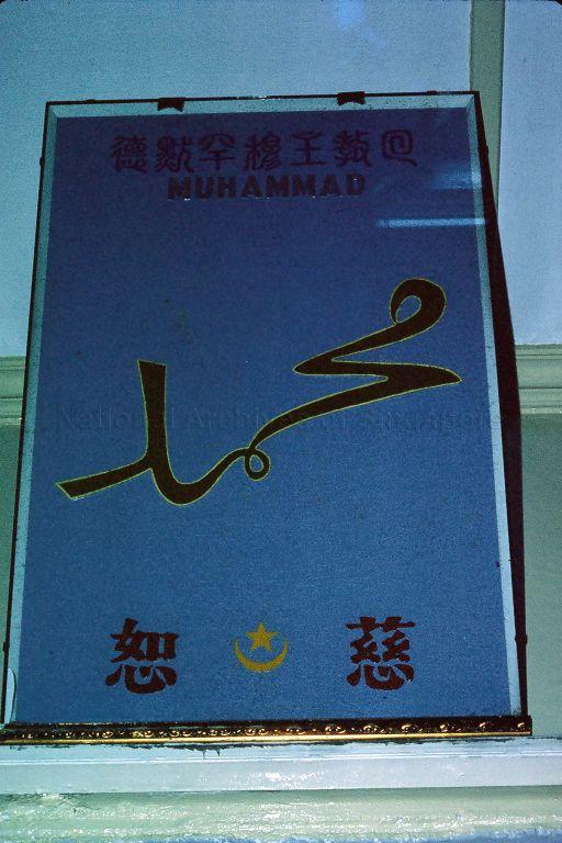 PICTURE WITH ISLAMIC SYMBOL REPRESENTING PROPHET MOHAMED, AT THE NANYANG MORALE UPLIFTING ASSOCIATION IN CUSCADEN ROAD
