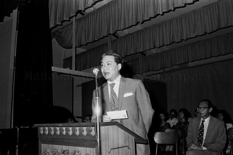 MR SHAW VEE MENG SPEAKING AT RAFFLES INSTITUTION DURING THE PRESENTATION OF $100,000 TOWARDS THE BUILDING OF THEIR SWIMMING POOL