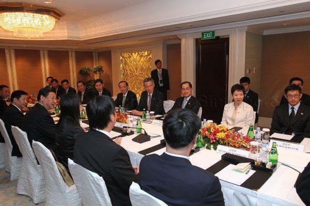 PRC VICE PRESIDENT XI JINPING MEETING WITH PRIME MINISTER LEE HSIEN LOONG AT SHANGRI-LA HOTEL