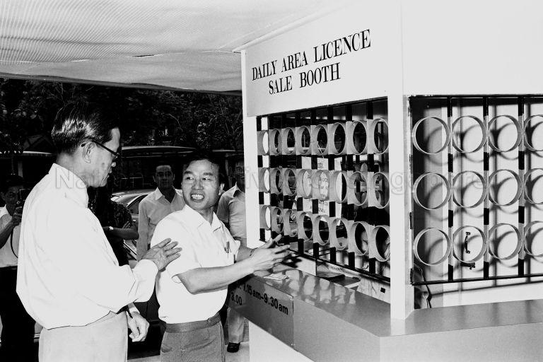 MINISTER FOR COMMUNICATIONS YONG NYUK LIN PURCHASING AN AREA LICENSING DISC AT THE DAILY AREA LICENCE BOOTH