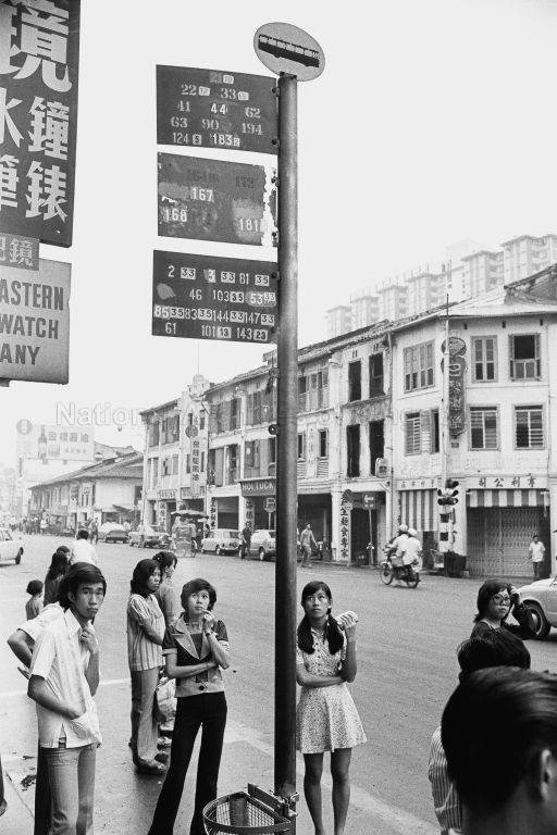 COMMUTERS WAITING FOR BUSES AT SOUTH BRIDGE ROAD BUS-STOP AFTER THE RE-ORGANISATION OF BUS SERVICES