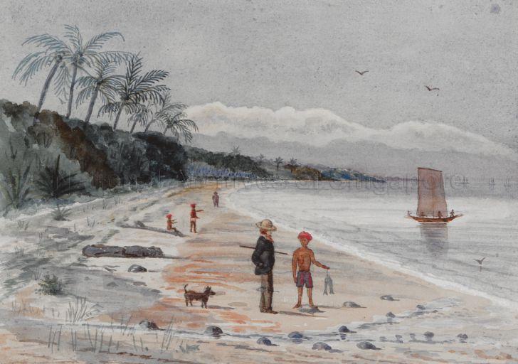 SKETCH OF VIEW ALONG BEACH BY SIGLAP, SINGAPORE, 1879