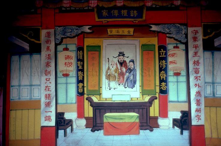 BACKDROP OF A TEMPLE FOR A WAYANG STAGE