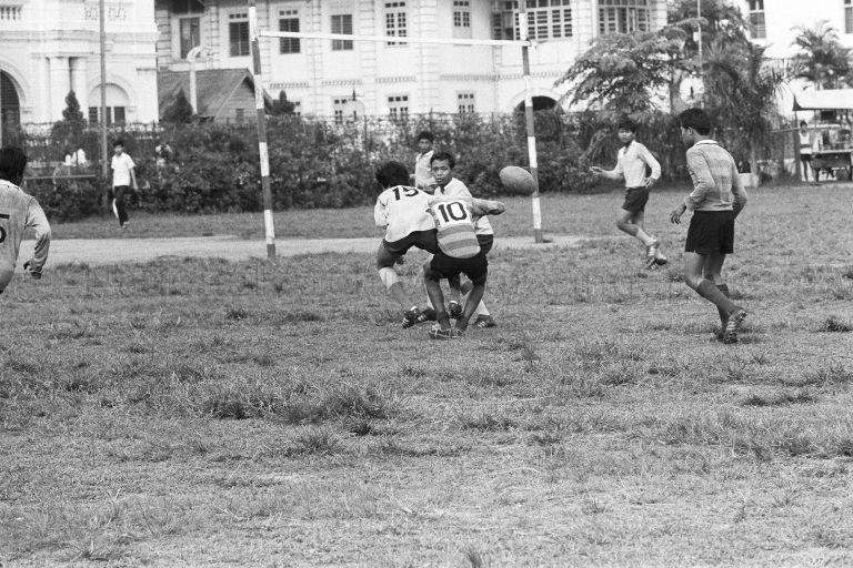 NATIONAL SCHOOLS 'B' DIVISION RUGBY LEAGUE BETWEEN ST JOSEPH'S INSTITUTION (SJI) AND VICTORIA SCHOOL HELD AT SJI GROUNDS AT BRAS BASAH ROAD