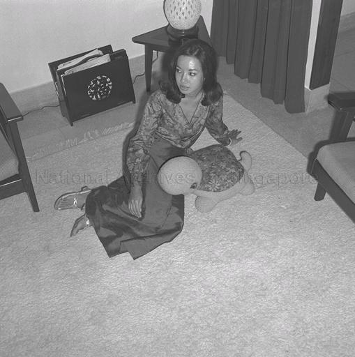 ANNE WILSON, A YOUNG SECRETARY MODELS HER OWN CLOTHES. SHE WEARS A THAI SILK SHIRT-WAISTER.