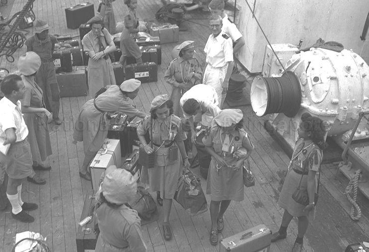 THE CONSORT OF THE RAJA OF PERLIS, THREE MALAY PRINCESSES AND TWO SHERIFAHS (DESCENDANTS OF THE PROPHET MOHAMMED) ARE AMONG THE 47 MALAYAN GIRL GUIDES LEAVING ON THE 'GORGON' FOR THE PERTH JAMBOREE.