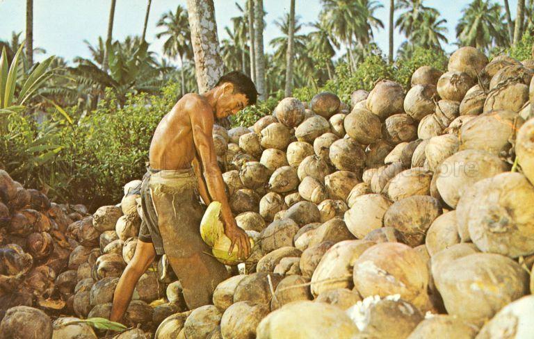 MAN HUSKING COCONUTS, SINGAPORE